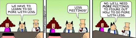 Podemos hacernos una idea de lo universal que es el problema a través de todos los sectores y todos los niveles sabiendo que incluso existe un Comic que se centra en las reuniones de trabajo: Dilbert. Podemos reírnos… o echarnos a llorar. Cada cual según se identifica con Dilbert. Aquí dos ejemplos: